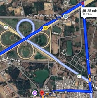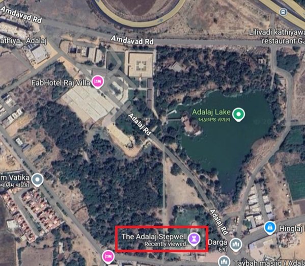 अडालज, अहमदाबाद के उत्तर की तरफ करीब २०-२२ किलोमीटर की दूरी पर है । शहर के बीच से निकलने समय थोड़ा ज्यादा (४५ – ५० मिनट) लगता है । हम लोग बोडकदेव से निकले थे तो सरखेज – गांधीनगर हाइवे से हो कर निकले तो करीब आधे घंटे में अडालज पहुँच गए ।