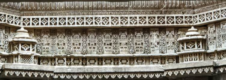 यहाँ की सारी संरचना करीब पाँच सौ साल पुरानी है और बालुई पत्थरों (Sand stone) से की हुई है । यह अपने आप में एक अद्भुत उपलब्धि है, लेकिन इन पत्थरों पर जो अद्भुत नक्काशी की है वह इस संरचना पर चार चाँद लगा देती है । हर एक पत्थर पर कुछ न कुछ विशिष्ट नक्काशी की हुई है । नक्काशी सोलंकी वास्तु-कला, जो अपनी जटिलता और विस्तृतता के लिए जानी जाती है, से प्रभावित है जिसमे कुछ प्रभाव मुस्लिम वास्तु-कला का भी दिखता है । नक्काशी में हिन्दू और जैन प्रतीक भी दिखाई देते हैं ।